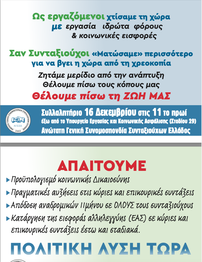 Μέρα γιορτής και μέρα αγώνα για μας τους συνταξιούχους